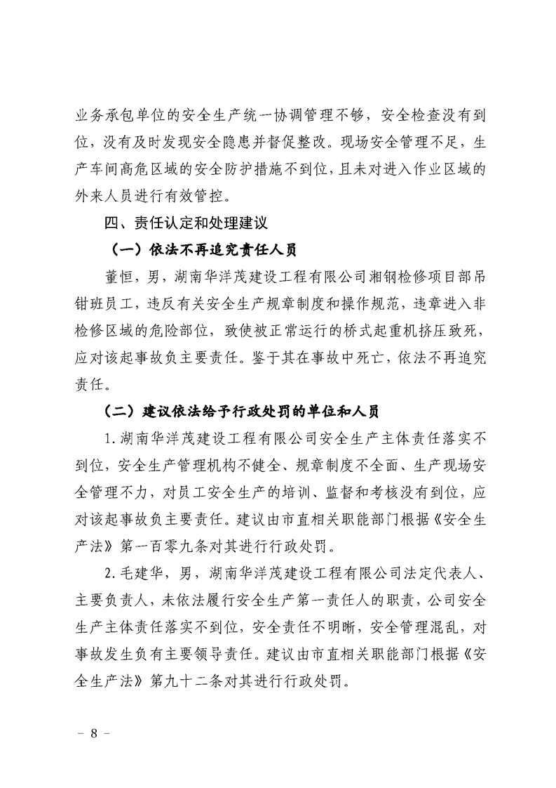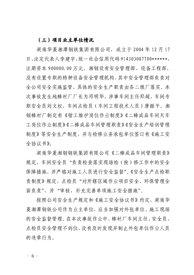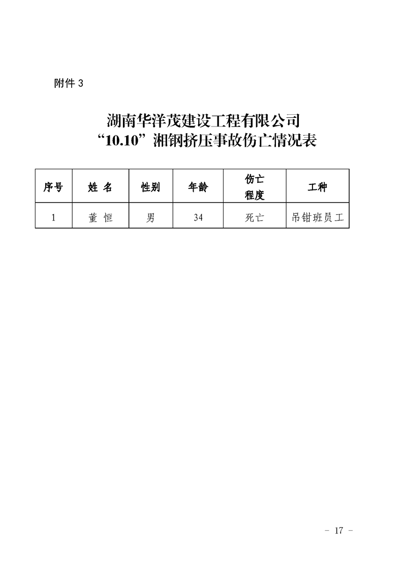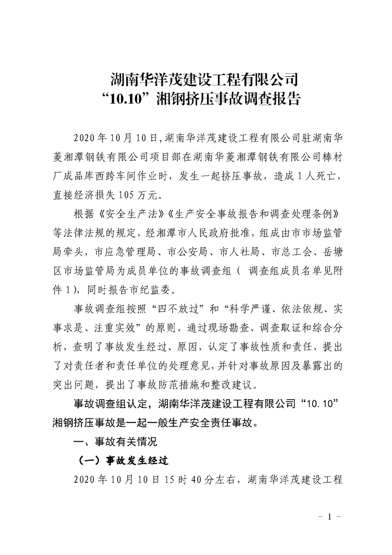 湖南華洋茂建設(shè)工程有限公司“10.10”湘鋼擠壓事故調(diào)查報告