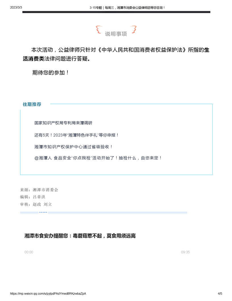 3·15專題|每周三,湘潭市消委會公益律師團等您咨詢!