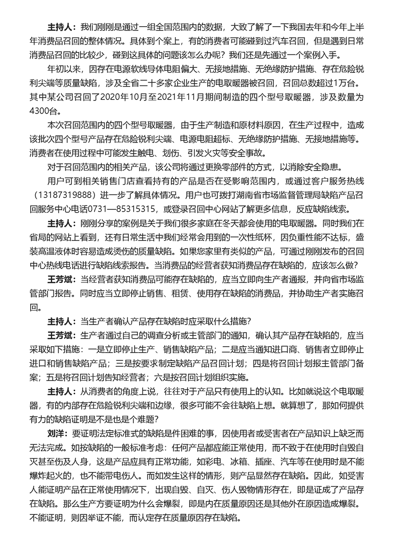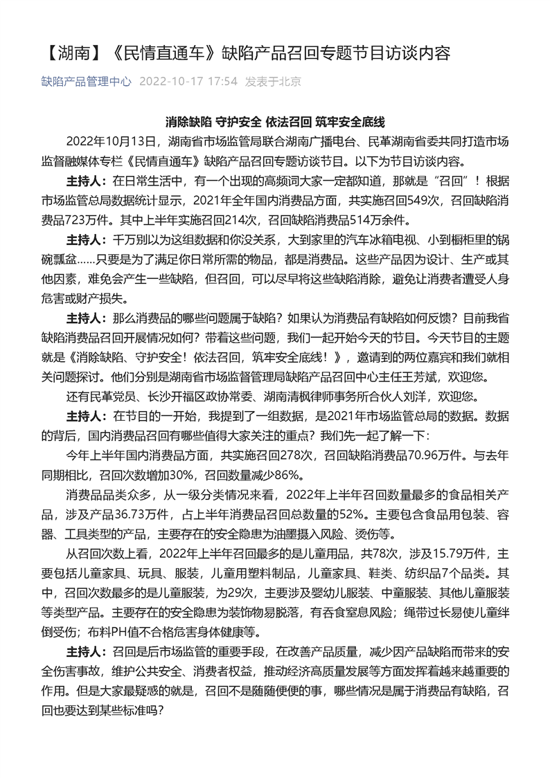 【湖南】《民情直通車》缺陷產(chǎn)品召回專題節(jié)目訪談內(nèi)容
