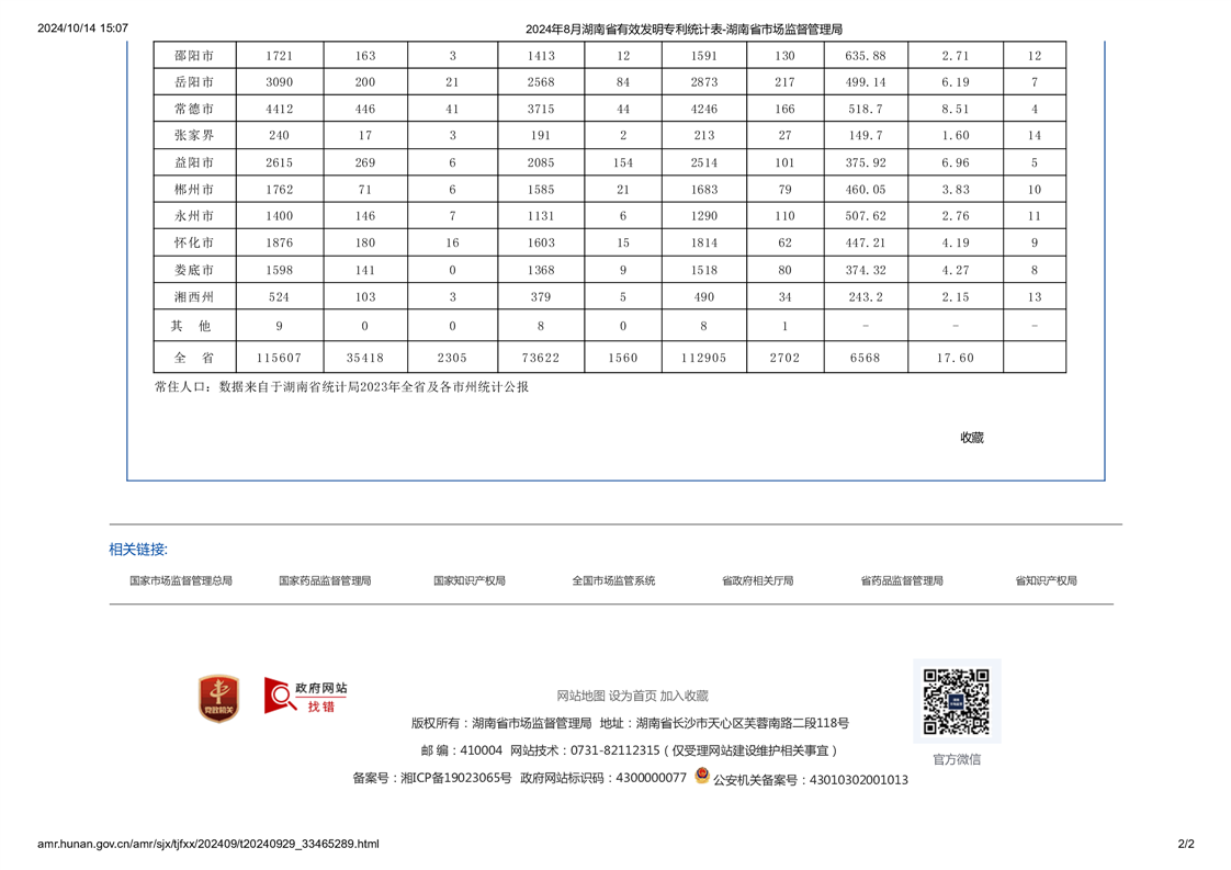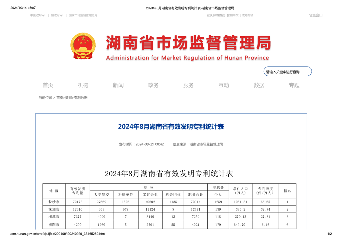 2024年8月湖南省有效發明專利統計表