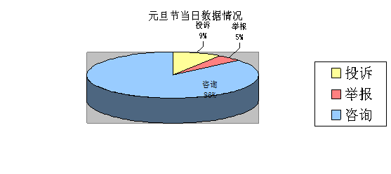 2020年元旦節(jié)當(dāng)日,湘潭市市場監(jiān)管局12315投訴舉報中心共受理消費者來電 43件,其中答復(fù)咨詢37件(指導(dǎo)消費者投訴5件),當(dāng)即受理市場監(jiān)管部門職責(zé)范圍內(nèi)投訴4件,舉報2件。如下圖: