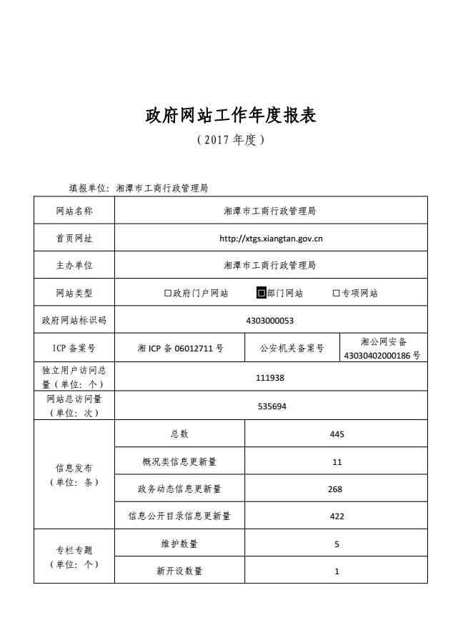 政府網(wǎng)站工作年度報表(2017年度)