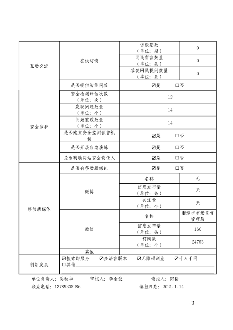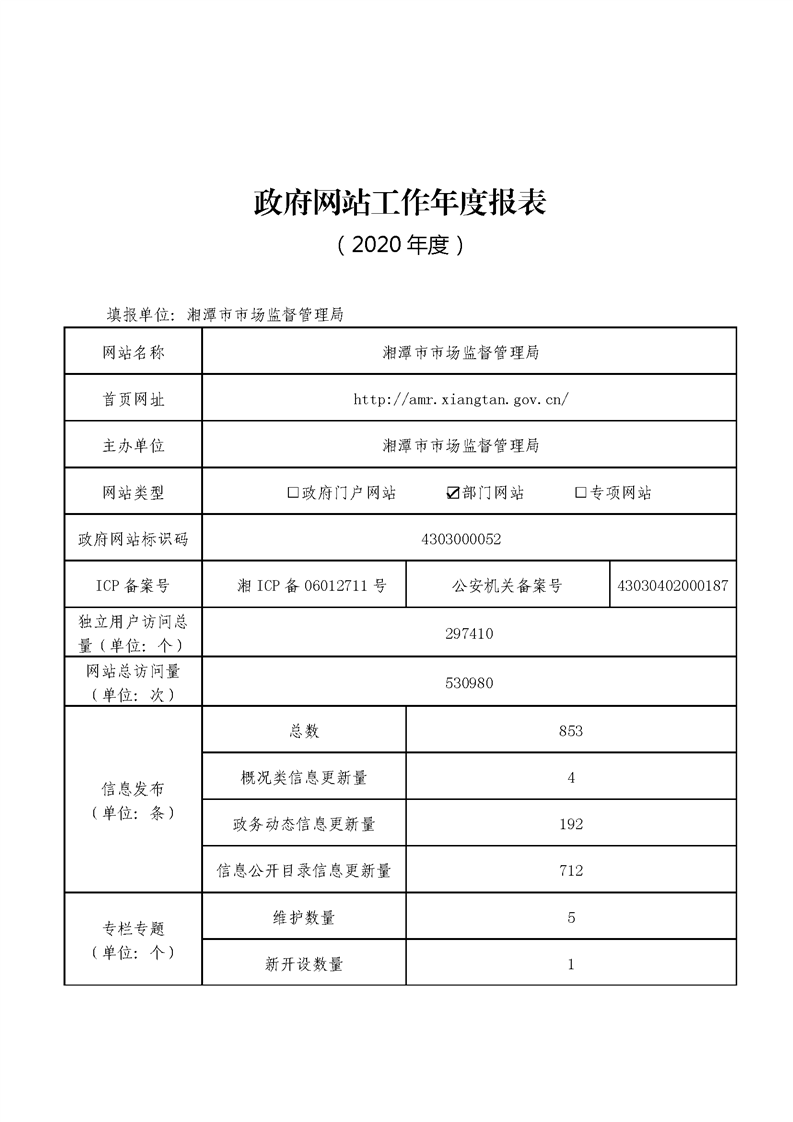 湘潭市市場監(jiān)督管理局政府網(wǎng)站工作年度報表(2020年度)