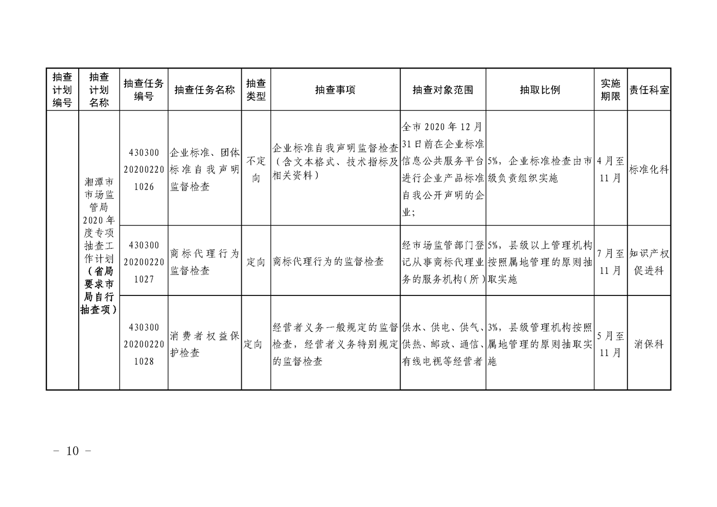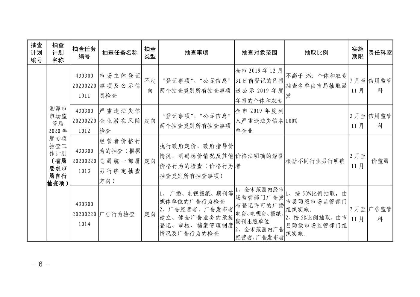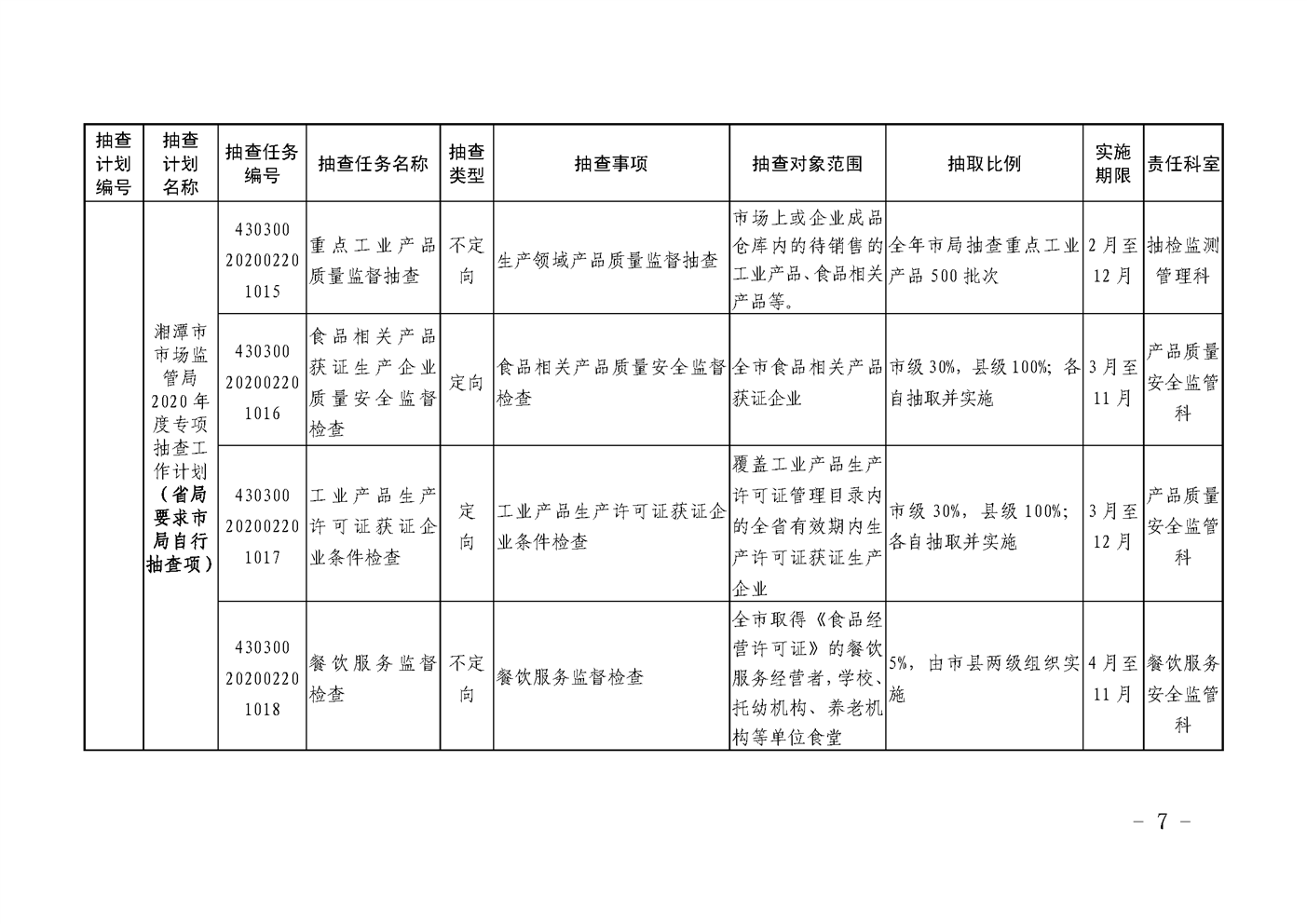 潭市監發〔2020〕22號2020年度“雙隨機、一公開”監管抽查工作計劃(2)