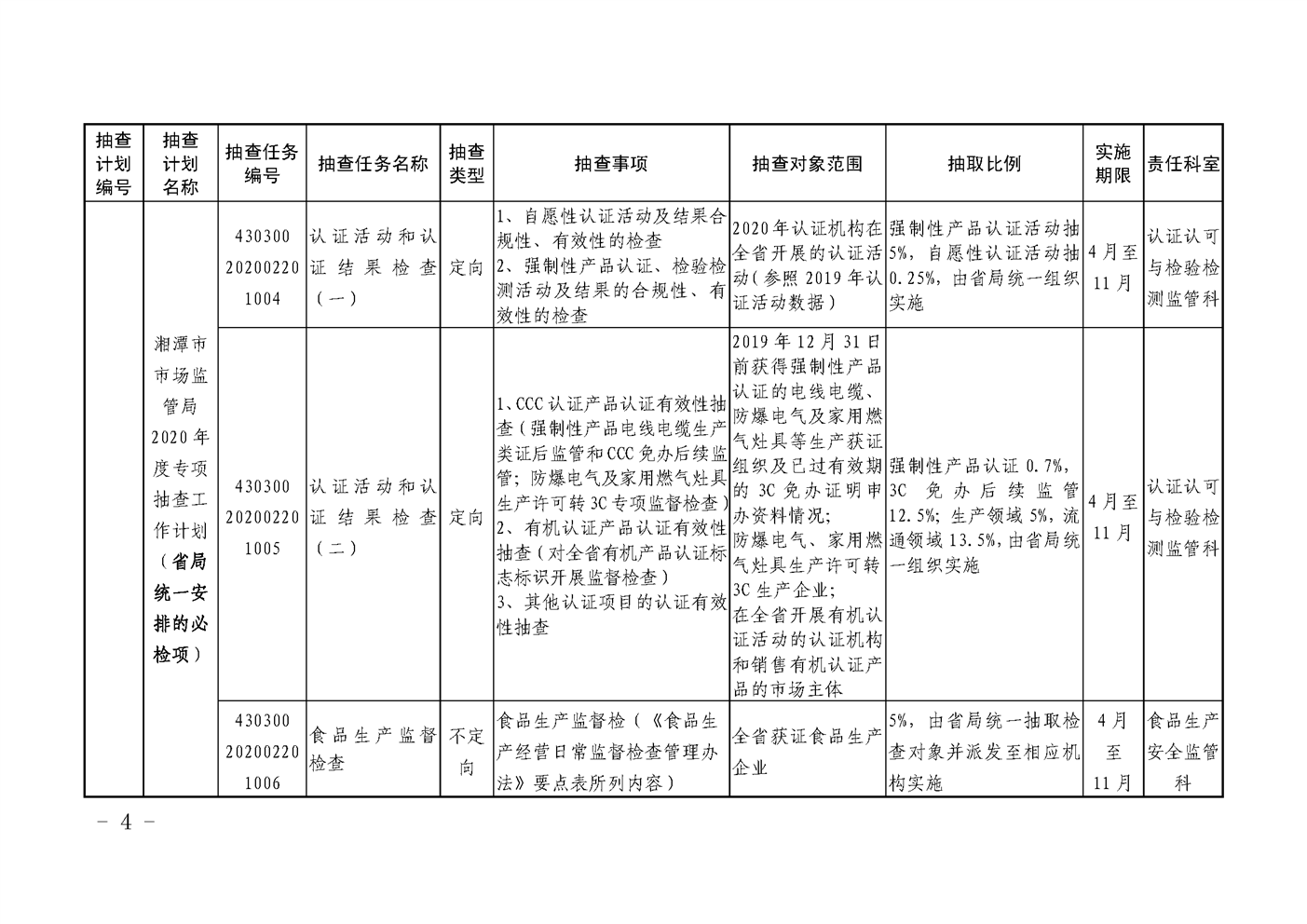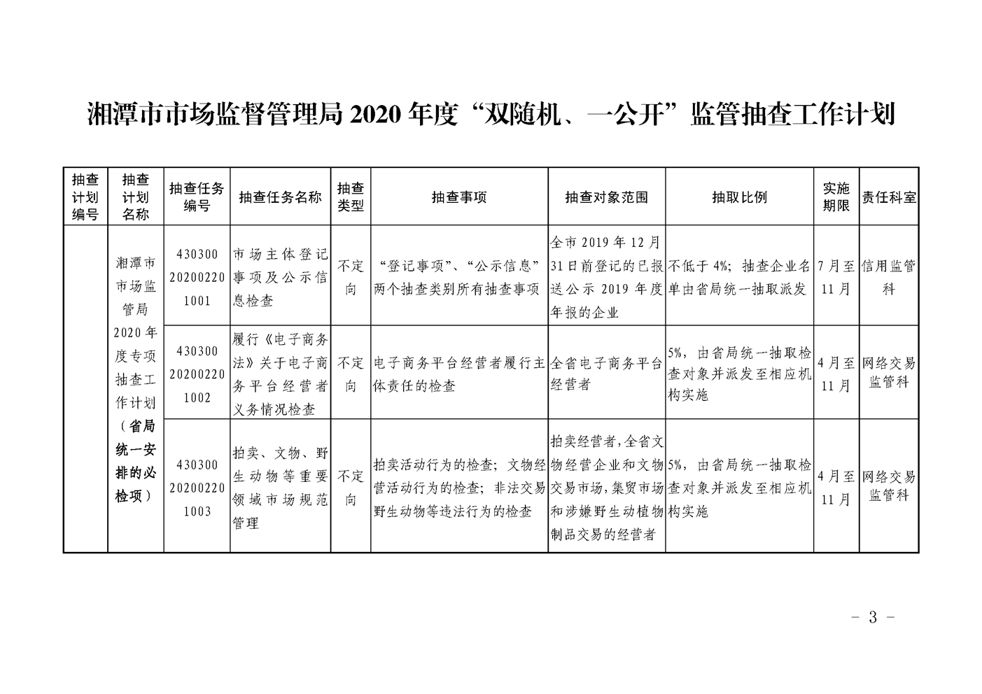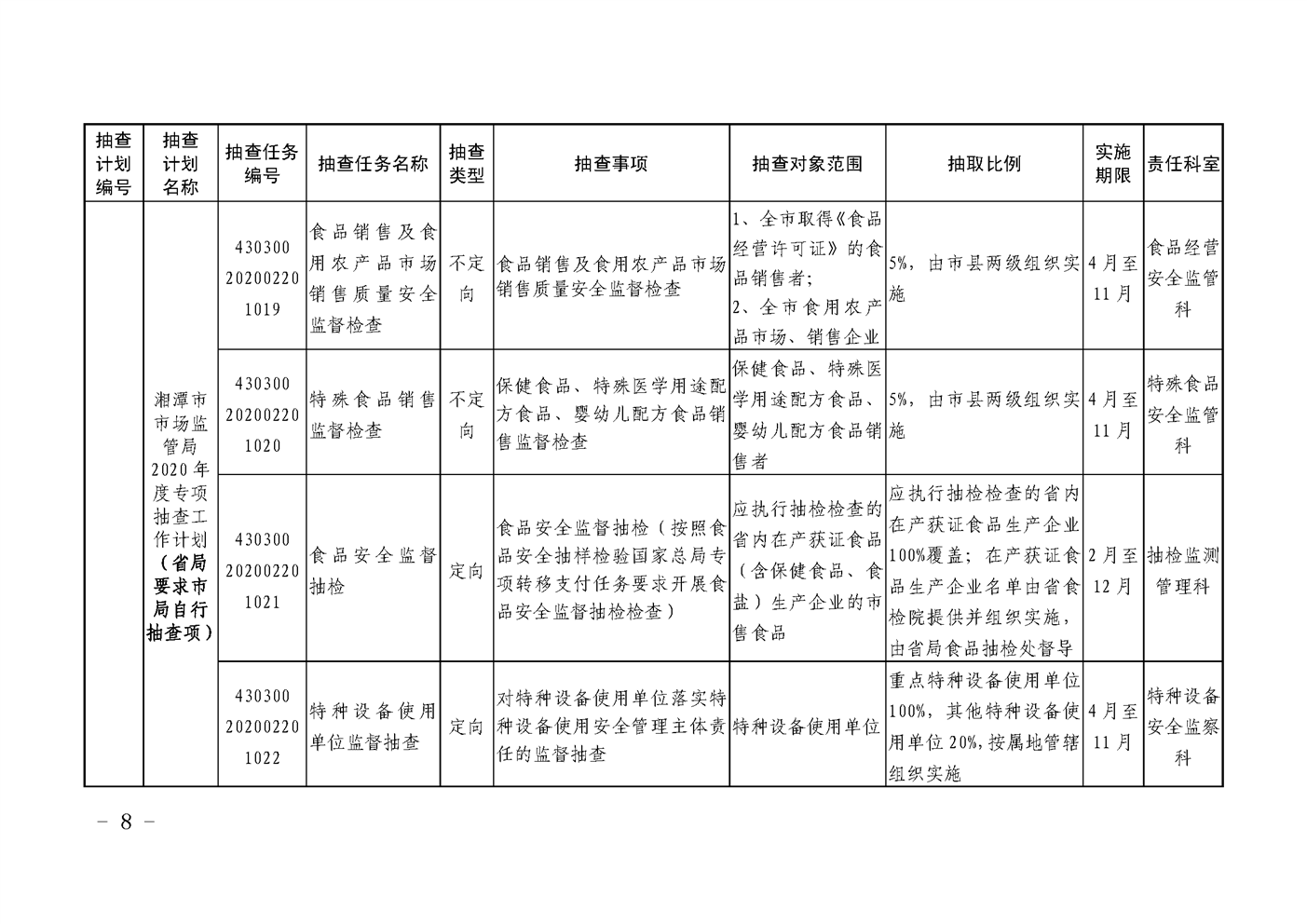 潭市監發〔2020〕22號2020年度“雙隨機、一公開”監管抽查工作計劃(2)