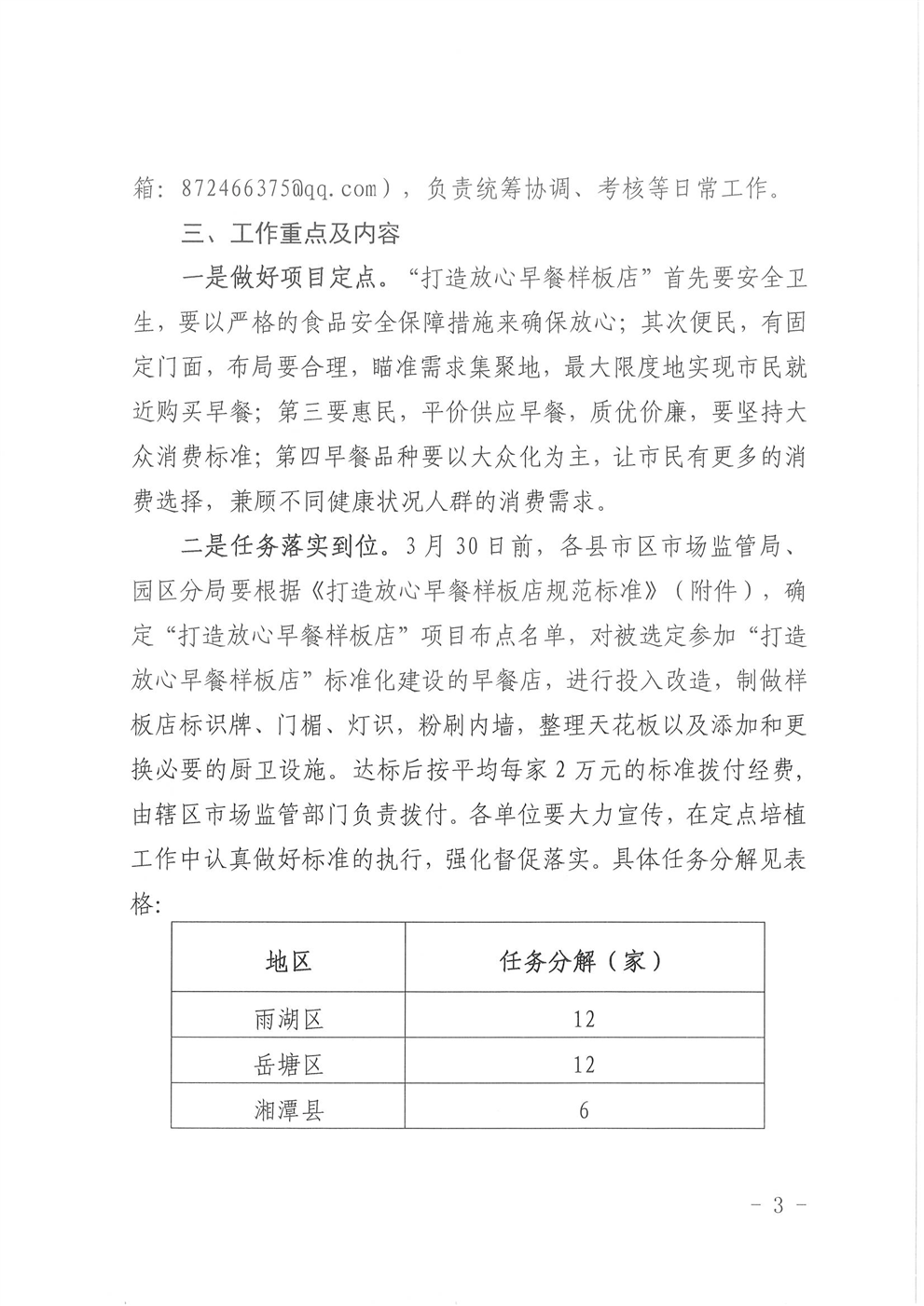 湘潭市市場監督管理局關于印發《開展“打造放心早餐樣板店” 工作實施方案》的通知